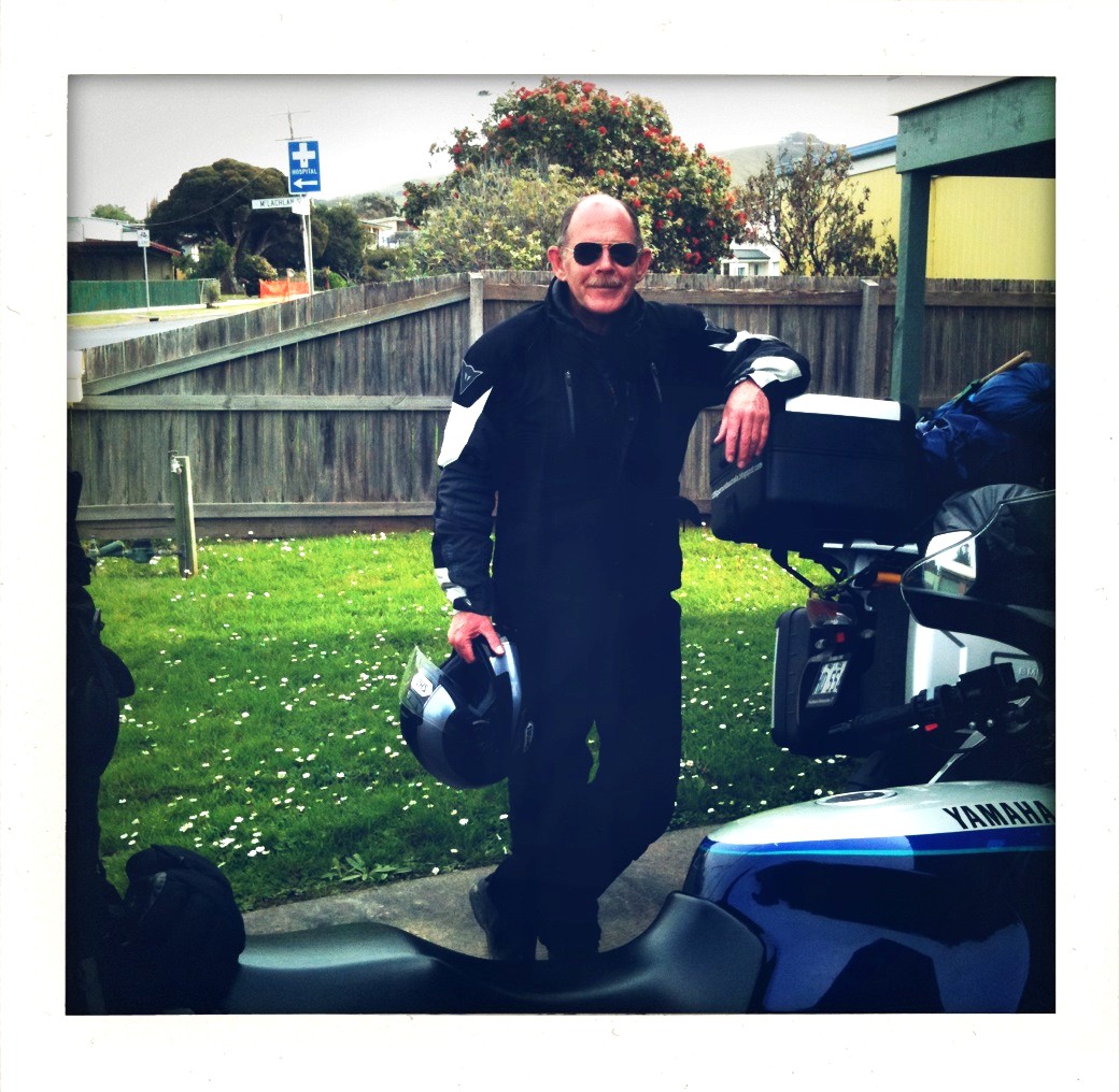 Seaview Lodge is a very nice B&B, most capably run by Dennis. But Noel and I needed a D, B&B. So Noel arrived with two large rump steaks purchased in Portland, a Greek salad complete with fetta and olives, and an apple crumble and whipped cream. They were all in the bag on the back of his bike. We dined like kings on Thursday evening (Noel cooked, I was on standby in a consultative capacity, not needed as it turned out; and I found something more suited to my culinary skills in the form of dishes). We were the sole occupants of the Lodge, and had the dining area with its open fire to ourselves.